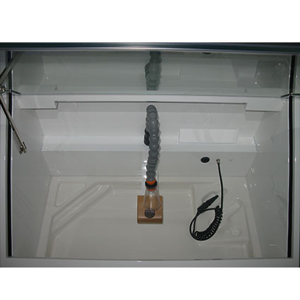 The IP Box Work Unit has been designed to protect the technician’s health during grinding processes. The powerful but silent suction motor prevents odour and dust resulting from working gypsum, plastics material, metal and the like. The box is equipped with a glass security screen, pressurized air pistol and suction nozzle.