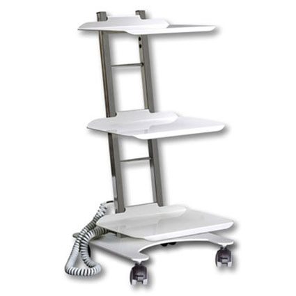 This elegant 3-tier trolley is made of nickel-plated, epoxy powder coated steel. it is flitted with two universal sockets and can be connected to the air and water supply lines.