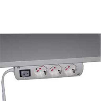 A tree-shelf trolley with a simple and essential design and compact dimensions. Made from epoxy powder painted electro-zink plated steel .Raised and round shelf edges, which guarentee the greatest hygiene. Get up a multi socket for electrical appliances. Handy and functional the Tolley S is a perfect working tool for dentist and their assistants.